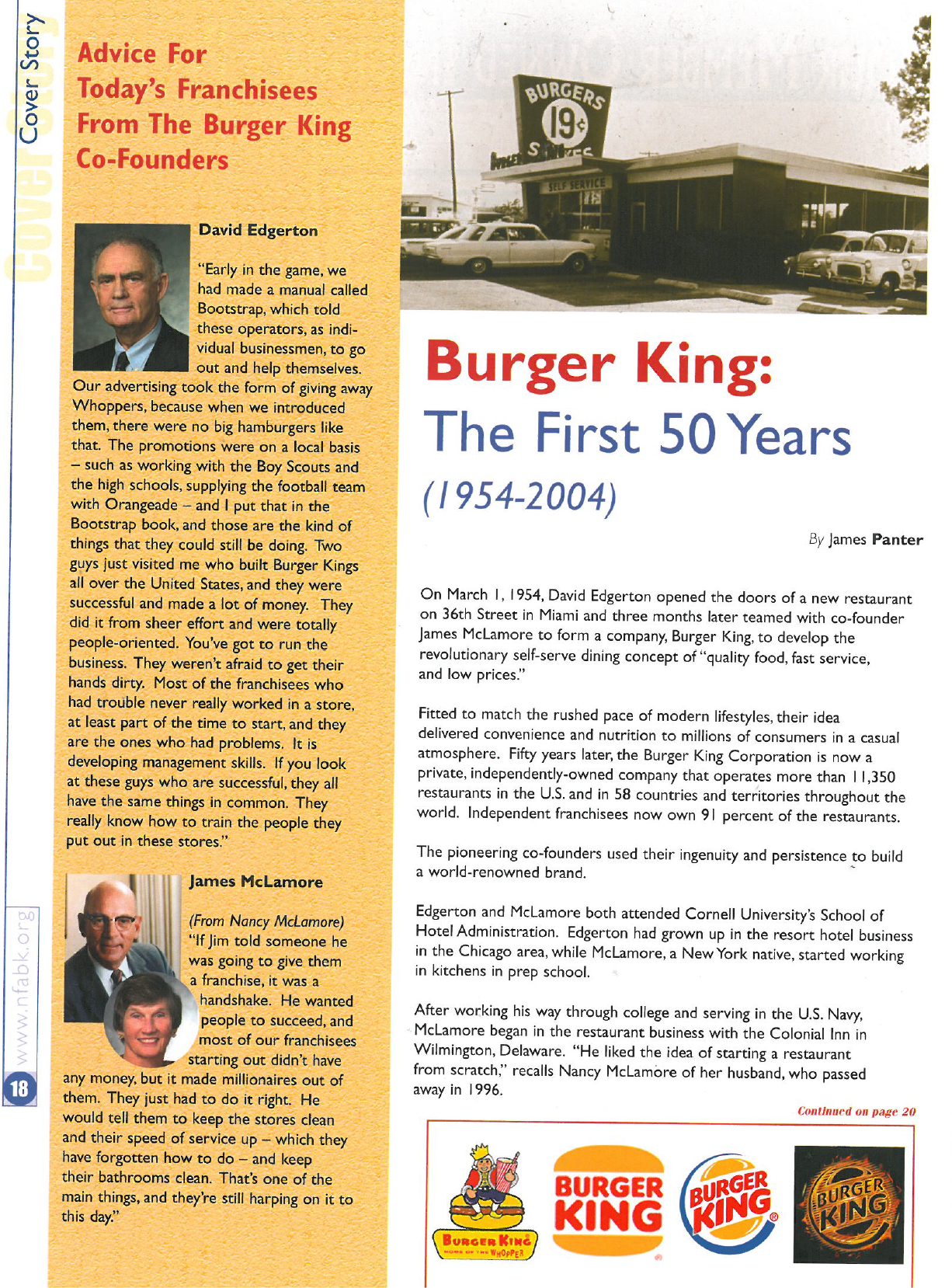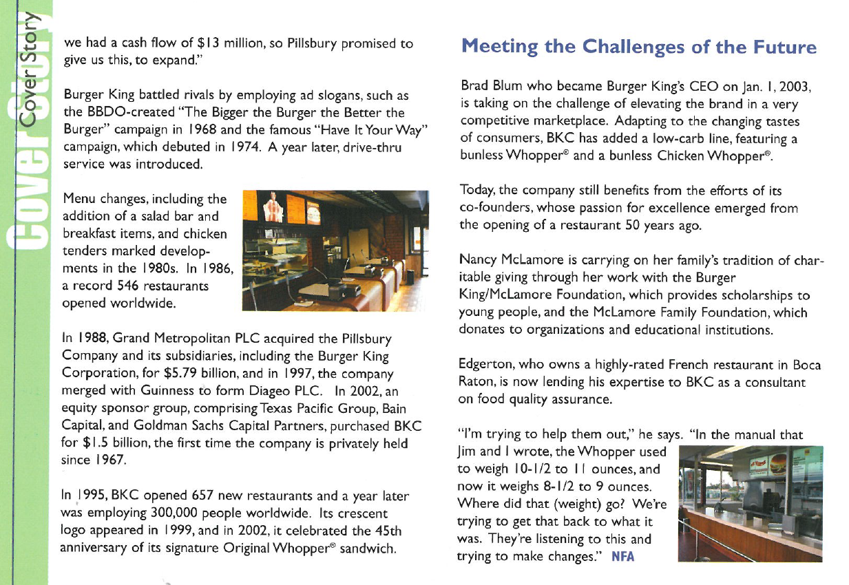 Burger King: The First 50 Years Jan 27 Written By Tucker McCormack Panter, James, Burger King: The First 50 Years (1954-2004), The FLAME Magazine, Issue 2, 2004. Tucker McCormack