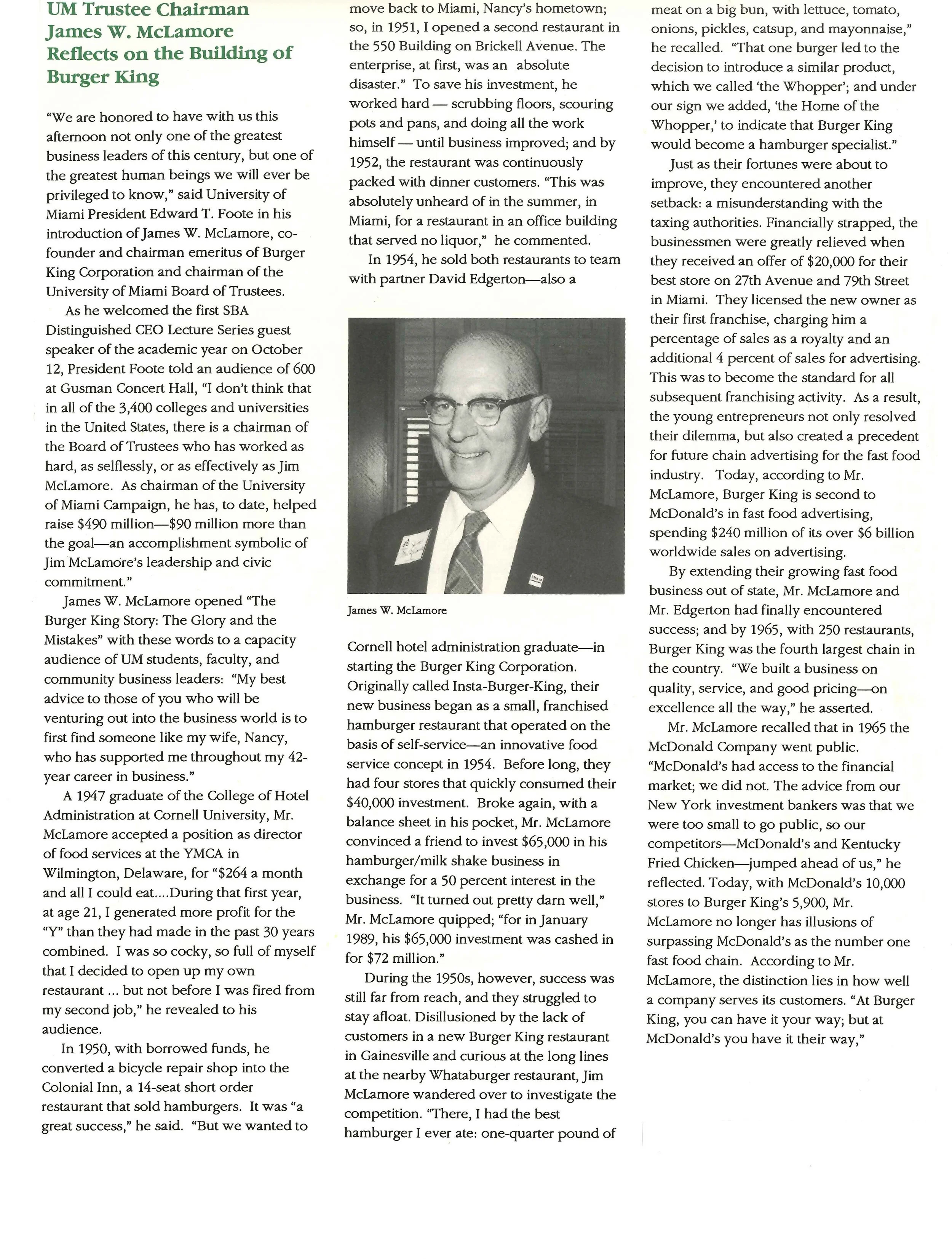 Reflections on Building Burger King In Memoriam Jan 29 Written By Tucker McCormack MiamiEducation Tucker McCormack